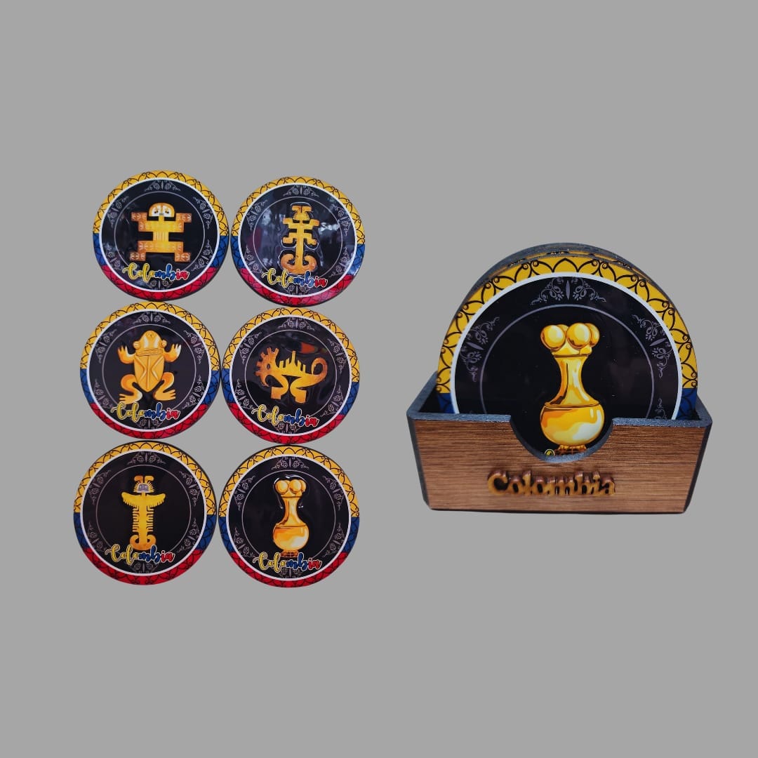 Trabajando la madera, así es como artesanos Colombianos elaboran estas piezas únicas para decorar tu mesa. Porta vasos exclusivos en madera y resina con diseños típicos Colombianos. Apóyalos comprando sus creaciones.